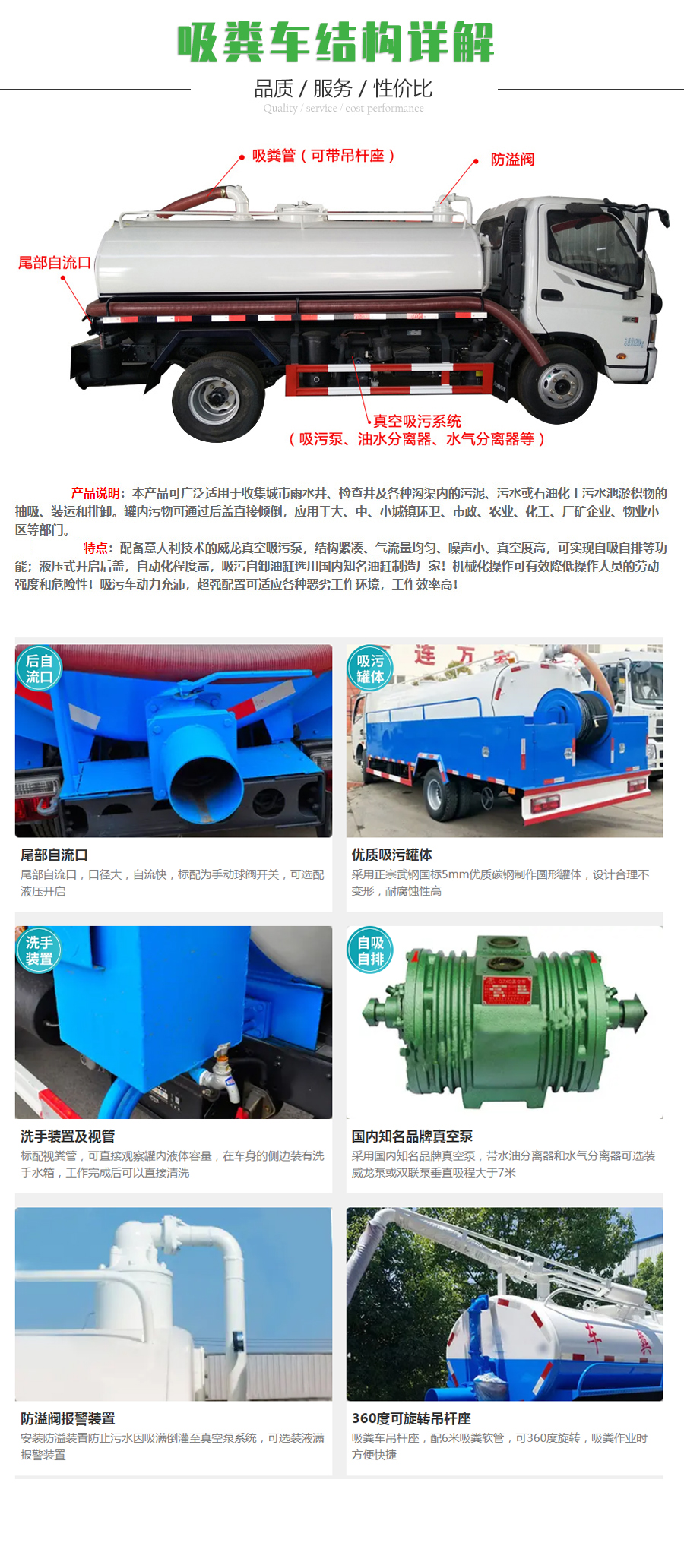 其它 | 該車用于抽吸和運送糞便.主要裝置為罐體和泵.對應后伸(mm)300。罐體有效容積:2.55立方米,介質(zhì):液態(tài)污物, 密度:800千克/立方米,罐體外形尺寸長×長軸×短軸(mm):2600×1400×1000。側后防護材料Q235B,側防護螺栓連接,后部防焊接連接,斷面尺寸(mm):50×120,后部防護離地高度(mm):400。僅選用2600軸距。ABS型號為CM4YL,生產(chǎn)廠家為廣州瑞立科密汽車電子股份有限公司.隨底盤選裝前部造型及格柵風格。 | ||