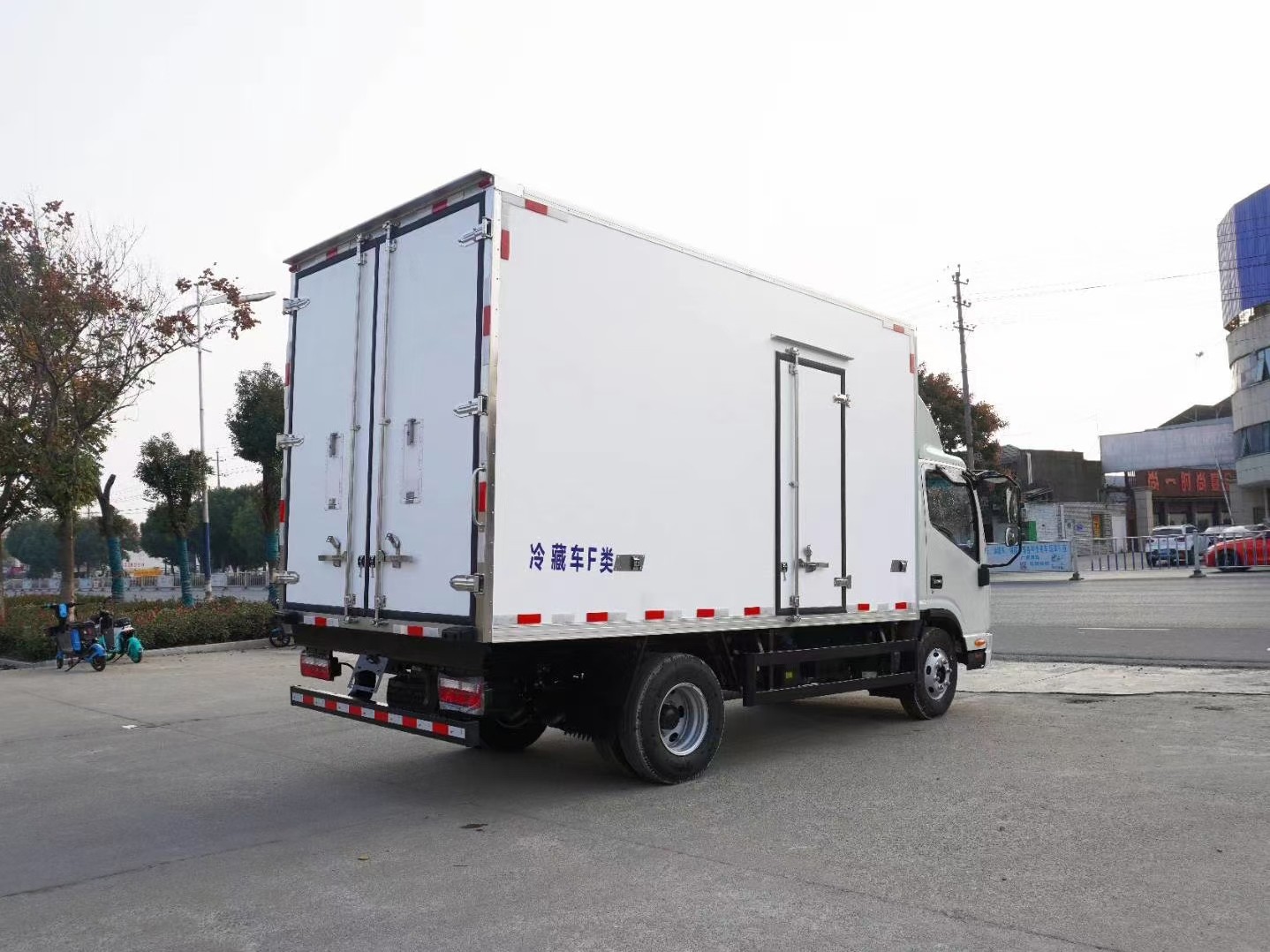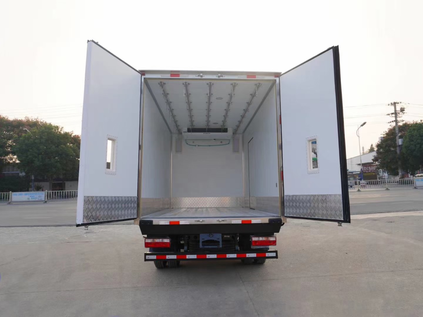 廂體工藝: 廂體材質(zhì)采用內(nèi)外玻璃鋼,中間8CM聚氨酯保溫板,后雙開(kāi)門(mén),廂體右側(cè)靠前選裝開(kāi)側(cè)門(mén),底部采用花紋防滑鋁板,前部排水孔,門(mén)邊條采用迷宮式橡膠密封條,鋁合金型材包邊,不銹鋼包角,不銹鋼門(mén)鎖,不銹鋼門(mén)框及合頁(yè),廂體內(nèi)節(jié)能LED照明燈。