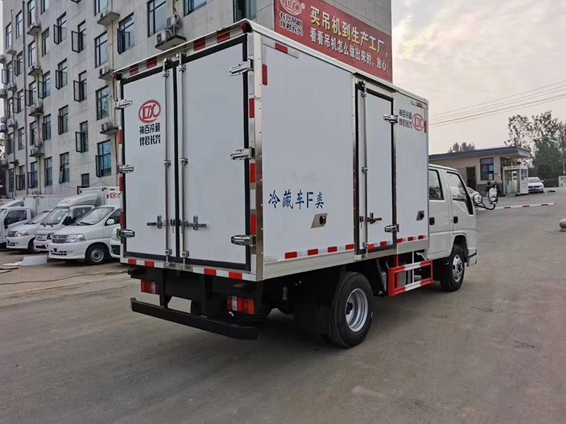 江鈴順達(dá)雙排冷藏車,整車型號(hào):AAA5043XLCJX6,整車尺寸:5995×1980×2900,廂體尺寸:3250×1800×1800,五十鈴115馬力發(fā)動(dòng)機(jī),5檔變速箱,原廠空調(diào),助力,ABS,油剎,軸距3360,7.00R16LT 8PR輪胎,廂體采用內(nèi)外玻璃鋼、中間8CM 厚聚氨酯保溫板、底板為防滑花紋鋁板,單開側(cè)門,不銹鋼門鎖件,-15度制冷機(jī)組,其余標(biāo)配。